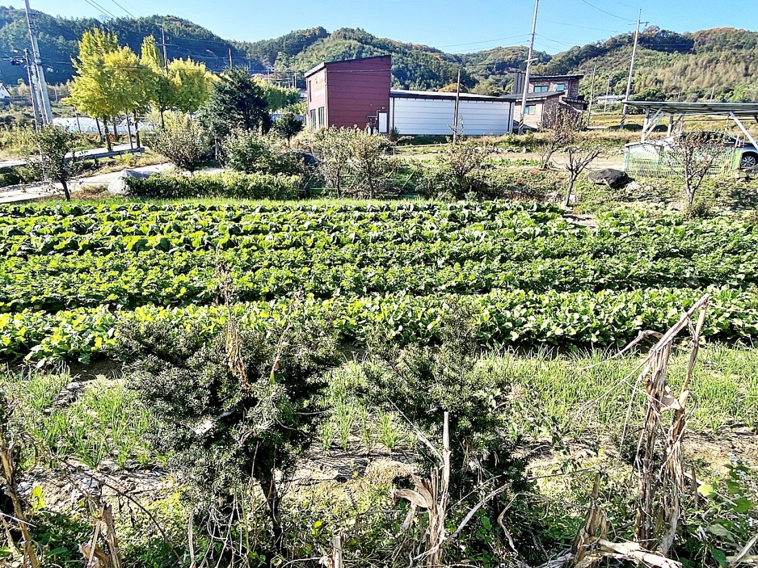 지방도 도로변에서 마을 안쪽으로 들어가는 길 초입에 위치한 농업진흥구역 토지