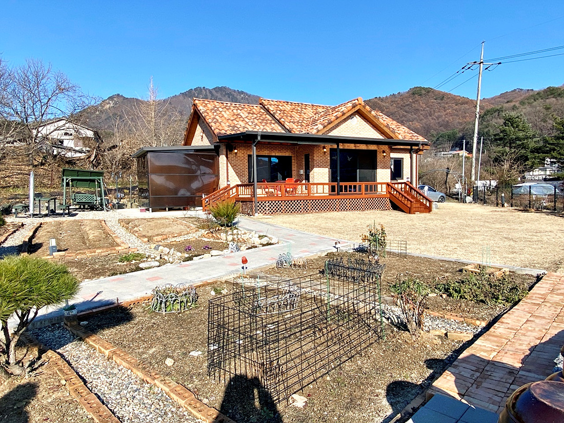 용문산 관광단지 인근의 넓은 토지의 관리 잘된 단층주택