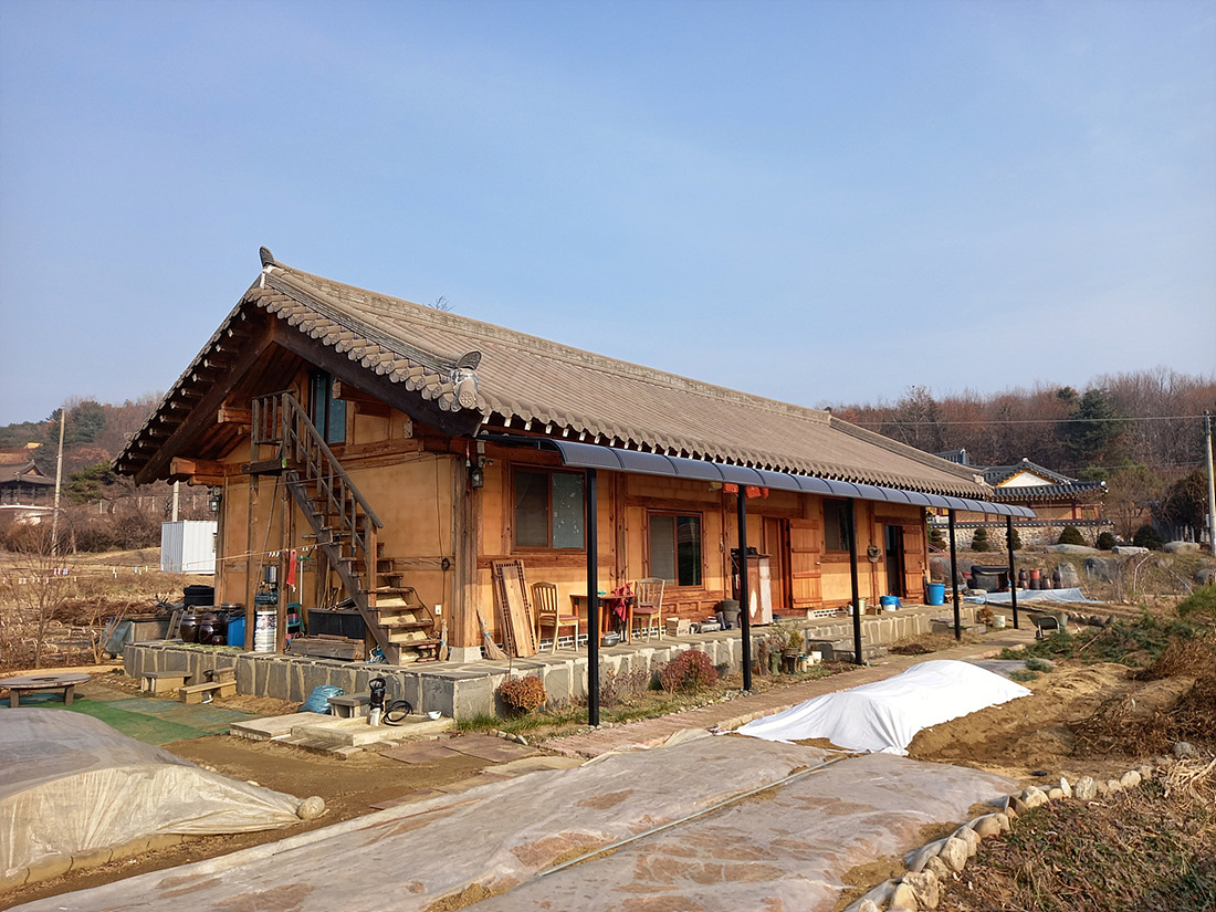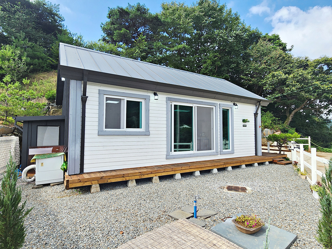 주변 산자락이 시원하게 조망되는 곳에 위치한 제2종근생 15평 신축 주말주택