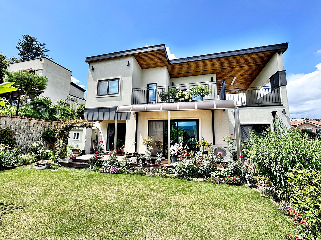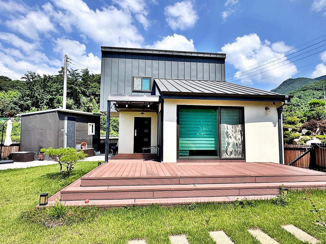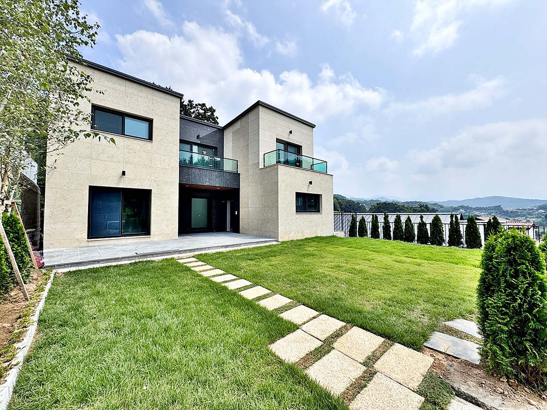 산으로 둘러쌓인 아늑한 입지의 모던한 전원주택