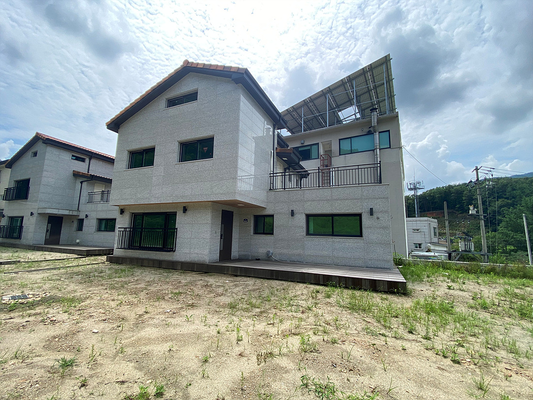 옥천리 전원주택 단지 상단에 위치하여 산 조망과 시야가 확 트인 전원주택