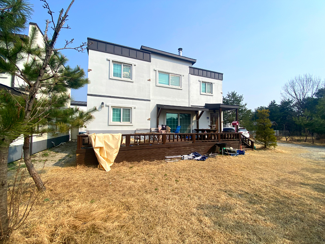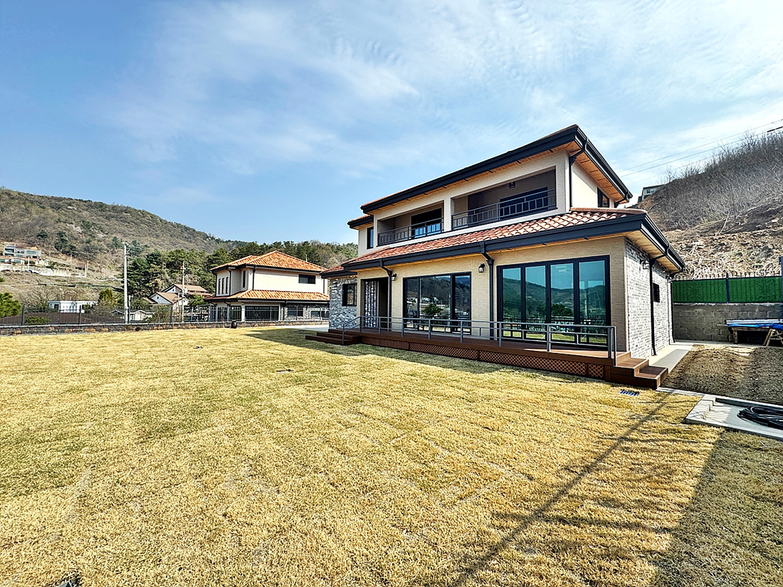 전원주택 단지내의 터넓은 여유롭고 편안한 단층주택
