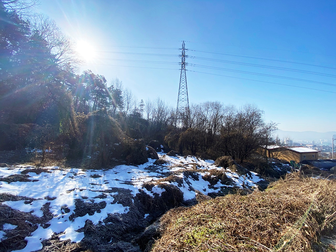 서향으로 주변산과 마을을 내려다 보는 조망의 토지