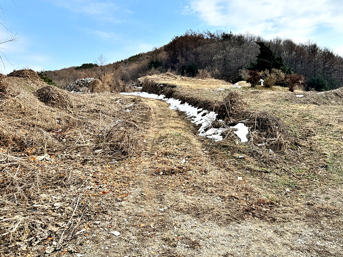 서향으로 주변산과 마을을 내려다 보는 조망의 토지