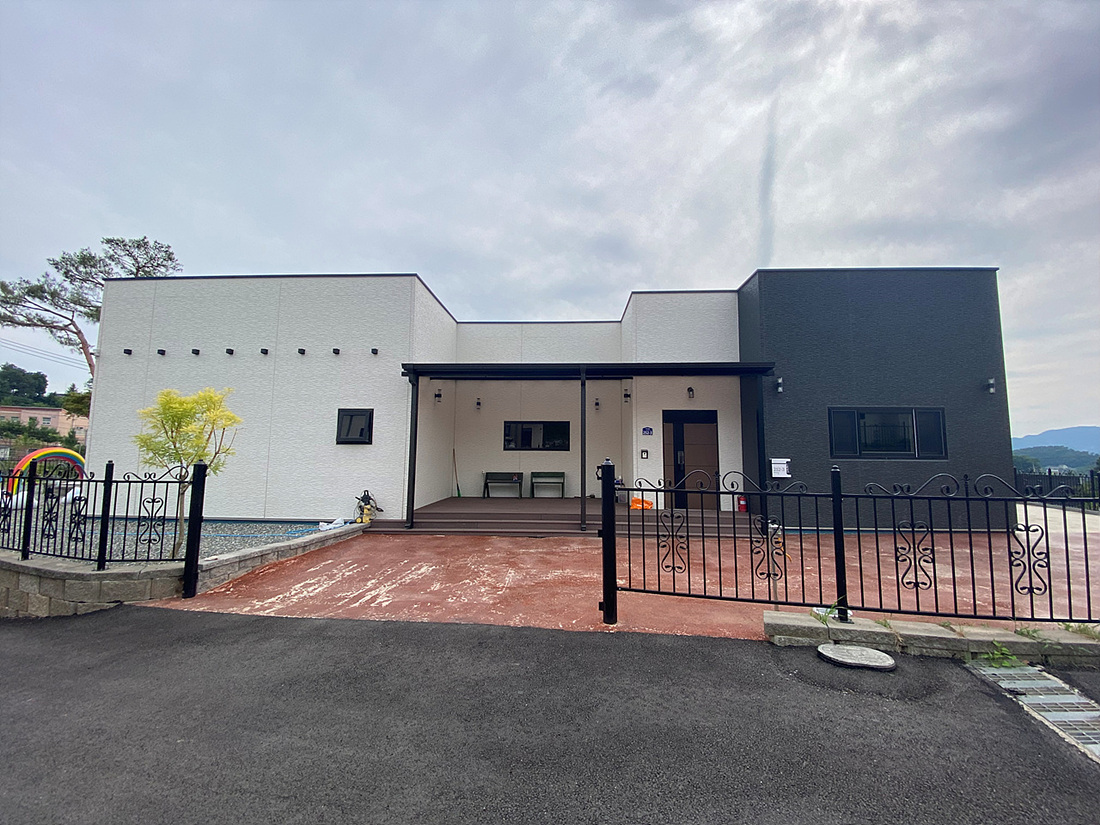 2차선 도로에 인접한 소형 단지내 넓은 토지 깔끔한 정남향 50평 단층 주택