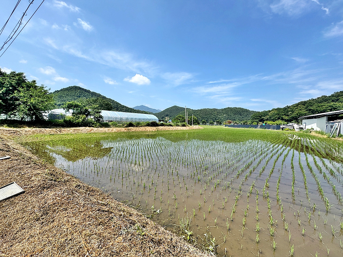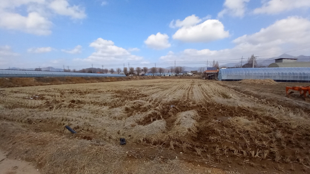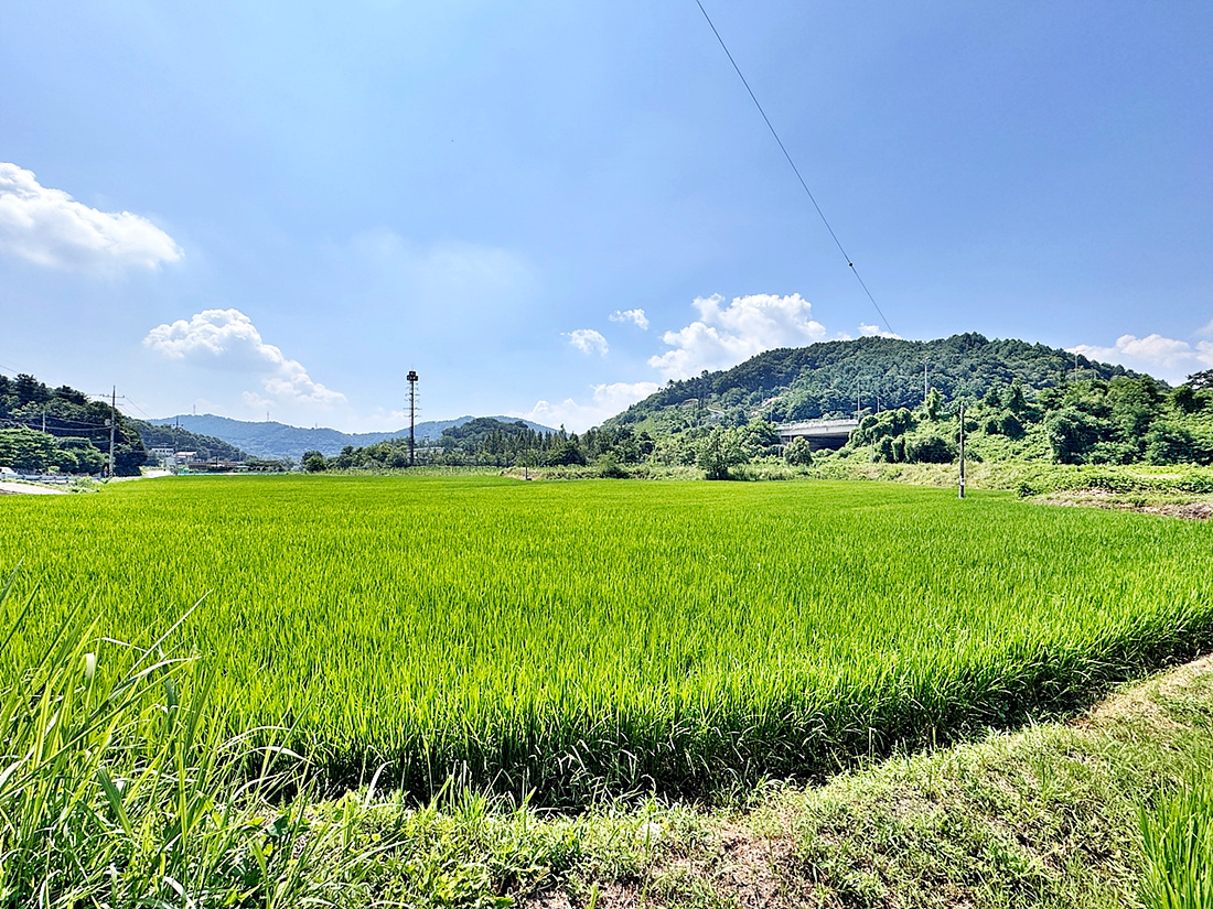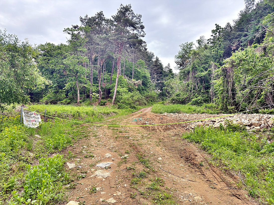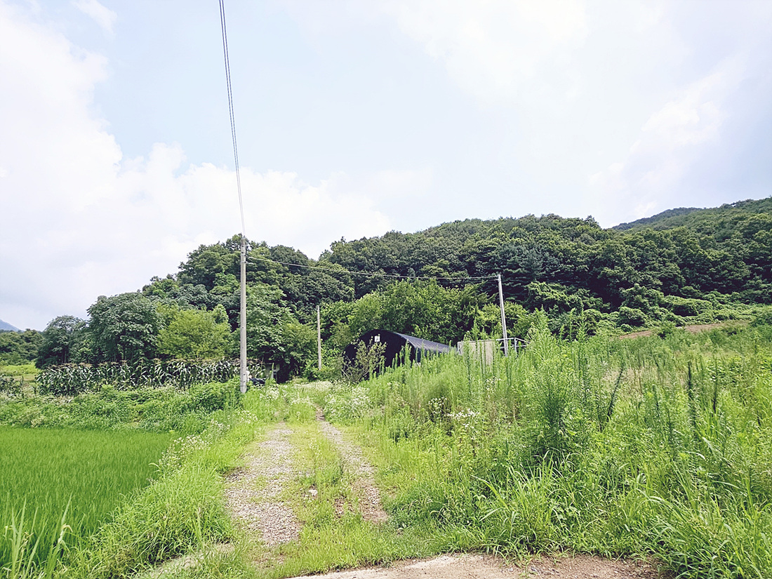 지방도 도로변에서 마을 안쪽으로 들어가는 길 초입에 위치한 농업진흥구역 토지