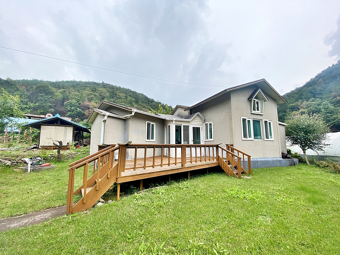 뒤로 산이 받치며 산밑으로 연수리 계곡이 좋은 곳에 지어진 전원주택