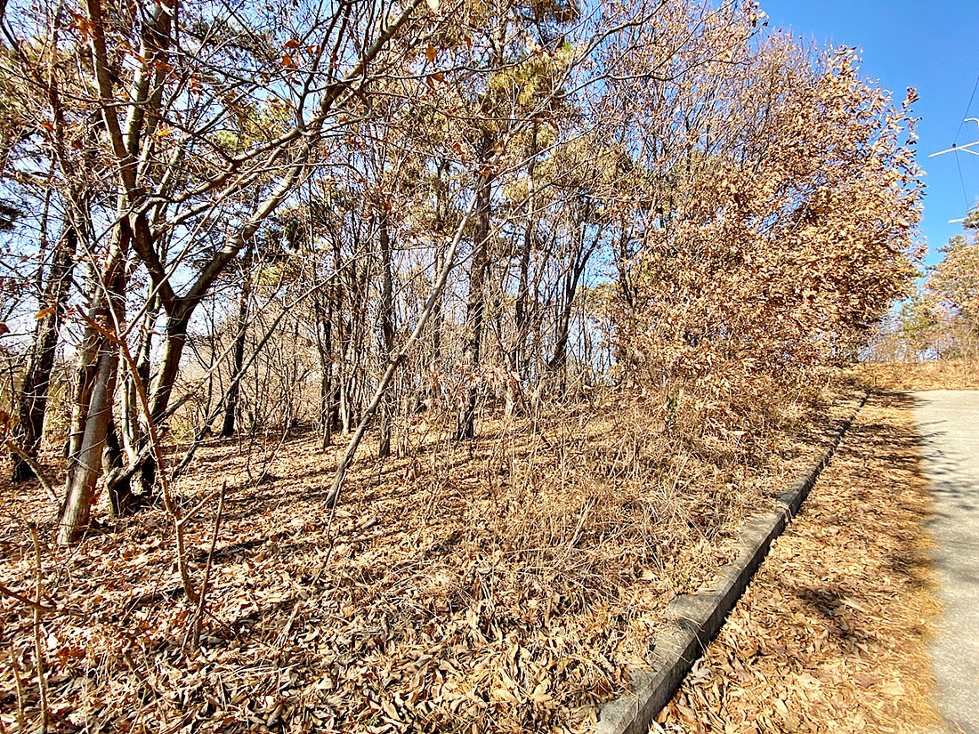 소규모 전원 주택 마을내 코너에 위치한 자연림 상태의 완경사 토지