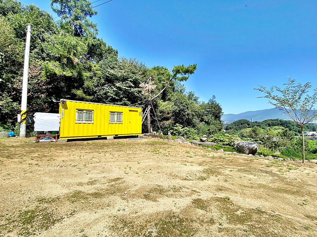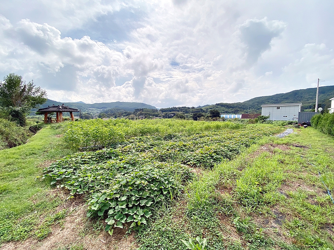 주말농장으로 사용중인 완경사지 국유림에 둘러쌓인 토지
